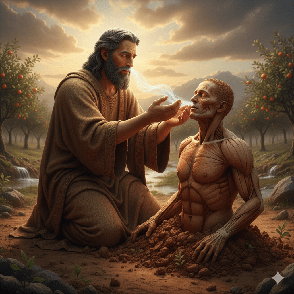 And the Lord God formed man of the dust of the ground, and breathed into his nostrils the breath of life; and man became a living being